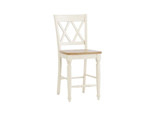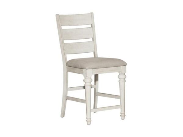 Crafted from rubberwood solids, this Farmhouse Reimagined side chair features an antique white finish with heavy wire brush distressing and a khaki linen upholstered seat. It includes a splat back design and tapered legs for comfort and style.