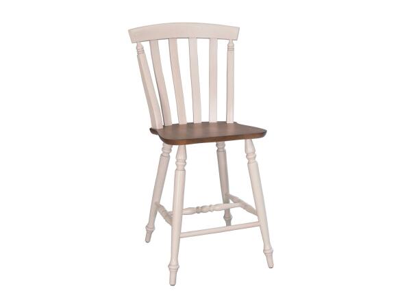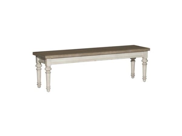 Crafted from rubberwood solids, this Farmhouse Reimagined bench features an antique white finish with a chestnut seat and a curved seat back for comfort. It is supported by beautifully tapered legs.