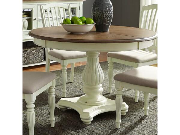 When shopping for dining sets, it’s important to consider table height as well as the style of the legs or pedestal. For regular height tables, you’ll want side chairs and benches for seating. If you choose a counter height table you could instead choose stools. And depending on the size of the dining room you can choose a five piece dining set or more! Upholstered dining chairs are also great style options.