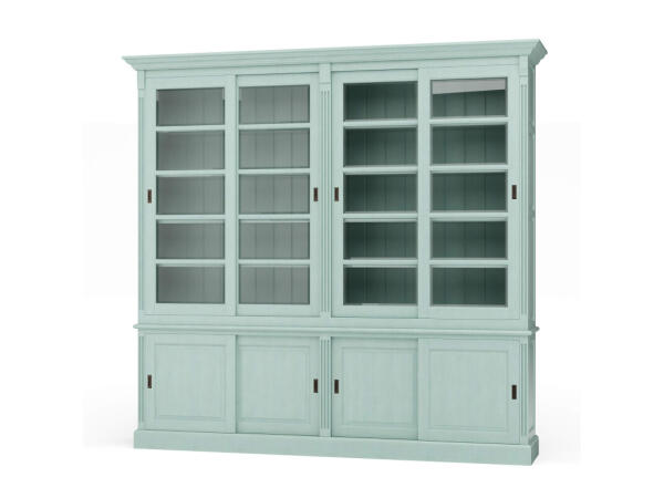 This unique Trellis Lane accent bookcase is crafted from mango wood with a weathered white finish and hand-carved end panels. It offers five shelves for storage, anchored by block legs.