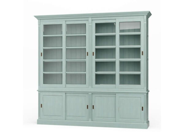 This unique Trellis Lane accent bookcase is crafted from solid mango wood with a weathered grey finish and hand-carved end panels. It offers five shelves for storage, anchored by block legs.