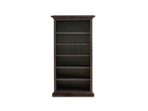Open etagere wrapped in lightly textured raffia with five wide shelves for airy storage and display. Raffia and wood construction; 40 in. W x 16 in. D x 90 in. H.