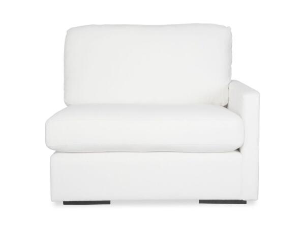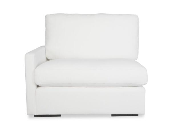 This stationary armless chair features ultra-soft plush seating with a high-resiliency foam topper for enhanced comfort. It is beautifully tailored on all sides and includes a loose back with a convenient zipper.