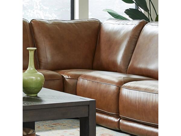 Create a custom sectional with this stationary corner wedge, featuring ultra-soft plush seating and a high-resiliency foam core. It is beautifully tailored on all sides with decorative welting and a loose, zippered back cushion.