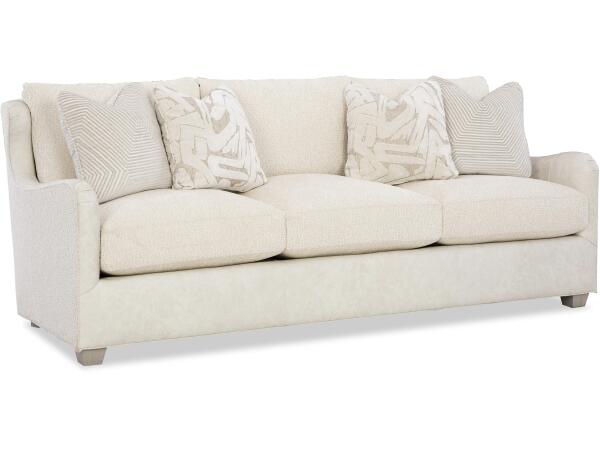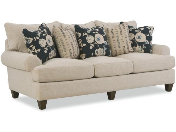 The Avery sofa in Cognac leather offers dual power recline with an articulating headrest for personalized comfort. It features a waterfall pad-over chaise for head-to-toe support and includes convenient USB-A and USB-C charging ports.