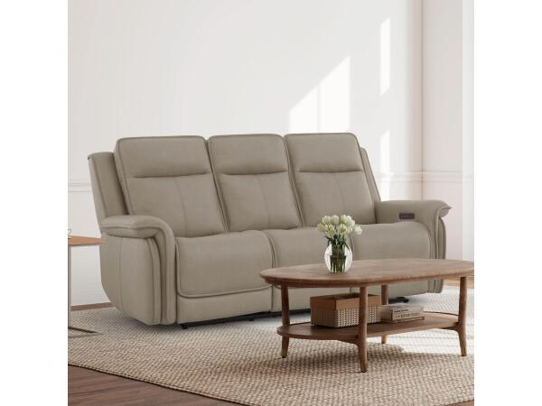 Relax in this triple power reclining sofa, which includes an adjustable power headrest and lumbar support for personalized comfort. This sofa features contoured memory foam seats and built-in USB and USB-C charging ports.