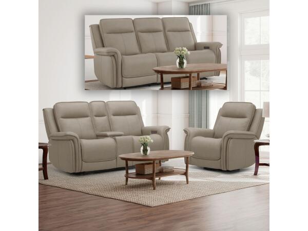This three-piece living room set includes a sofa, loveseat, and recliner, all with triple power recline for the headrest and lumbar. Enjoy premium comfort from memory foam seats, plus modern convenience with USB charging ports and a loveseat console.