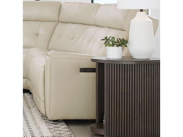 This left-arm recliner offers a triple zero gravity power recline with an articulating headrest and powered lumbar support. It is crafted with semi-aniline top grain leather and includes built-in USB-A and USB-C charging ports.
