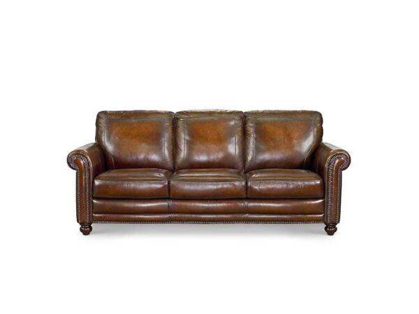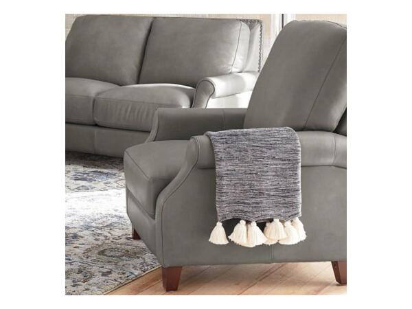 Leather L-shaped sectional with panel arms and a modest footprint for spacious seating. Customize leather color, cushion feel, optional nailhead trim, and tapered-leg finish.