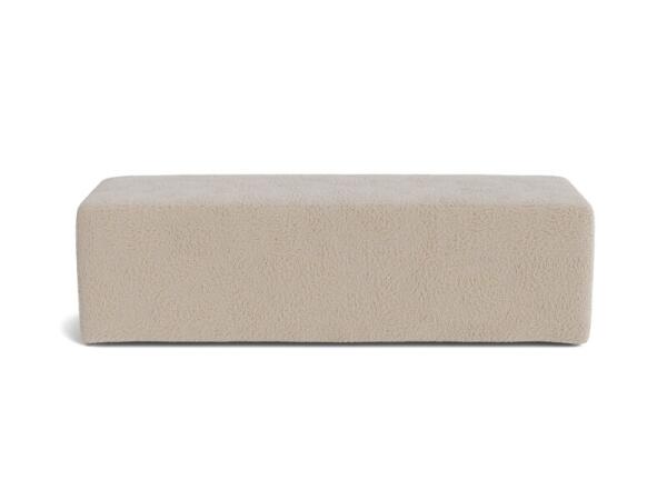 Upholstered ottoman bench with a simple silhouette and low, hidden wood legs for seating or a footrest. Measures 60W x 22D x 18H in.; assembled and finished in the USA.