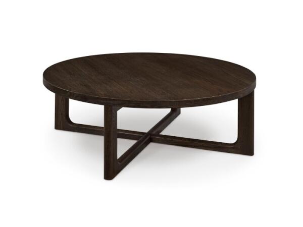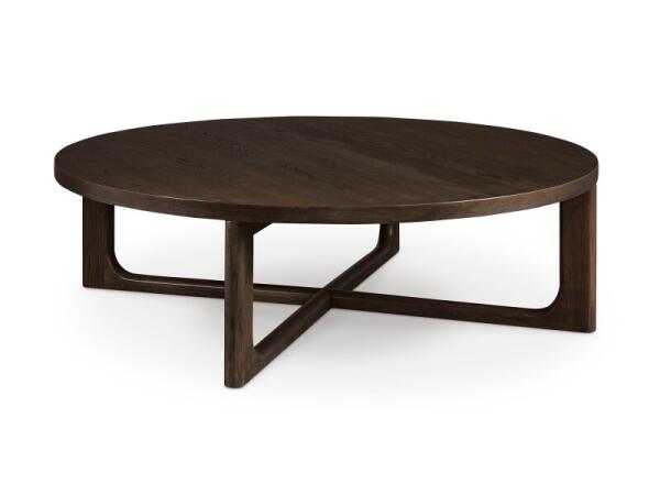 Rectangular cocktail table with an X‑shaped design that showcases raw oak grain for natural character. Artisan crafted in the USA; 66 in. W x 36 in. D x 16 in. H.