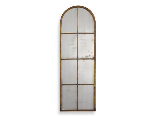 This arch features a forged iron frame in a hand applied warm bronze finish with burnished distressing encasing an antique