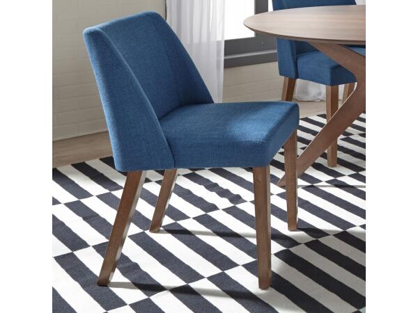 Crafted from rubberwood solids, this Space Savers Nido chair features blue jean denim upholstery, an angled back, and splayed legs. This contemporary chair offers comfort and style for compact spaces.