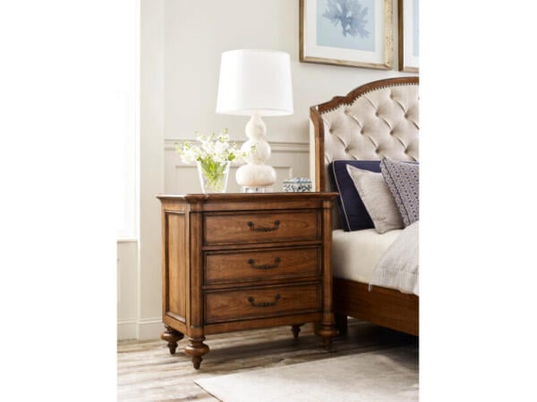 Two-drawer nightstand blends a modern reveal and classic beaded rails. Built with solid American oak and oak veneers, dovetail drawers, and under-mounted self-closing ball-bearing guides.