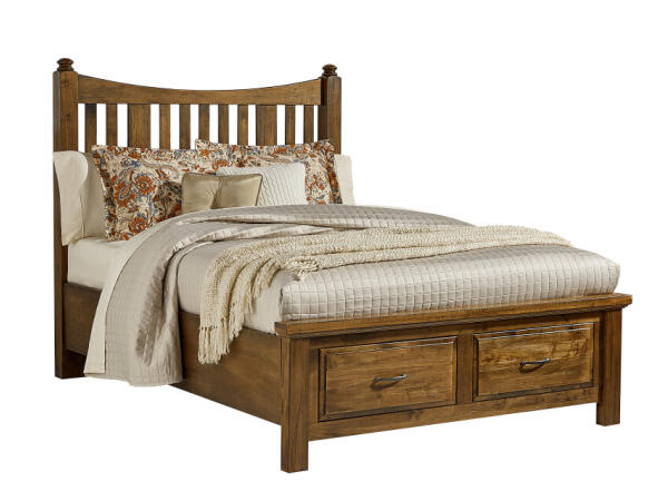 King slat poster storage bed in solid American maple and birch, made in the USA with mortise-and-tenon construction and English-dovetail, soft-close drawers.