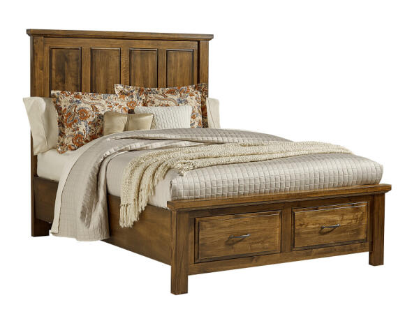 King mansion storage bed in solid American maple and birch, made in the USA with mortise-and-tenon construction and English-dovetail, soft-close drawers.