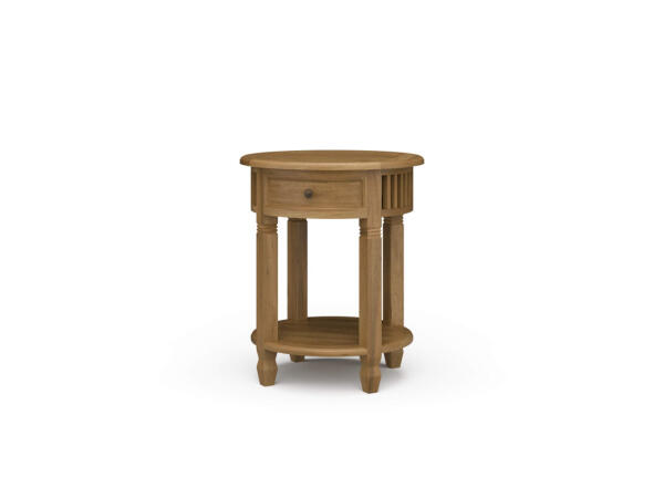 This City View console bar table features Rubberwood solids, Quartered White Oak veneers, and a Coffee Bean finish with reeded end panels. It includes hidden storage and a built-in charging station with two AC outlets, one USB-A, and one USB-C port.
