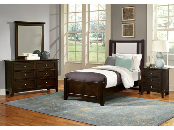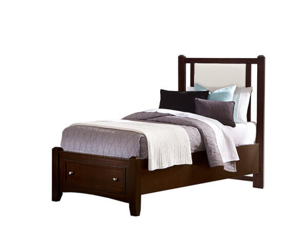 Made in the USA, this twin upholstered poster bed uses Revolution Performance Fabric for durable, long-lasting panels. Built with cherry veneers and polar solids in Grey.