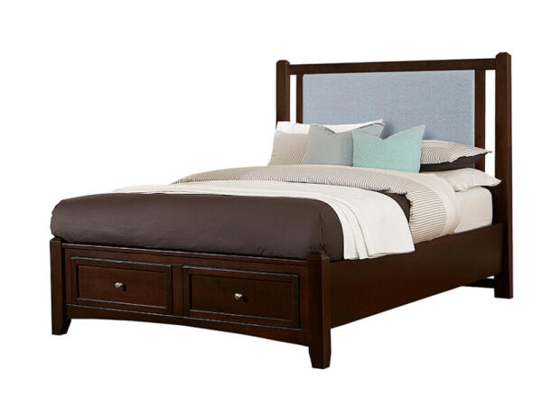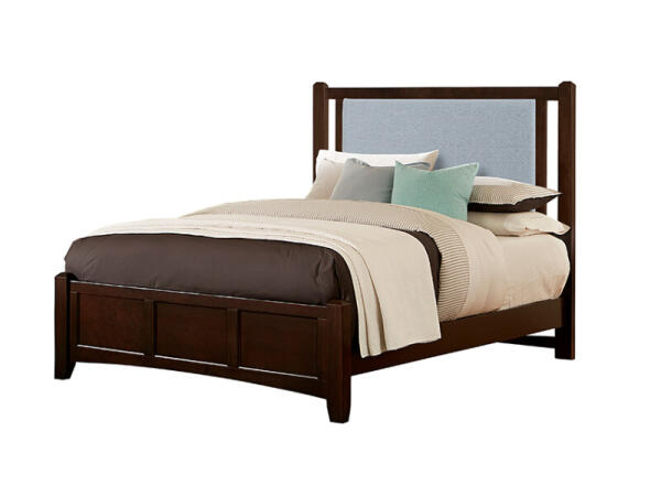 King upholstered bed made in the USA from solid American white oak with mortise-and-tenon construction for strength and stability. Supports sustainable forestry through a tree-replacement program.