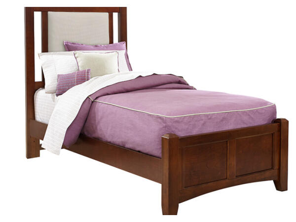 Twin upholstered storage bed with footboard storage, featuring Revolution Performance Fabric in linen; made in the USA with cherry veneers and polar solids.
