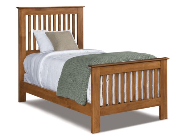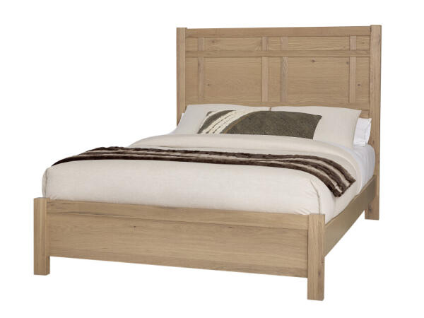 King architectural bed frame made in the USA from solid American white oak with mortise-and-tenon construction for durability. The maker replaces every tree used through a reforestation program.