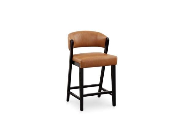 Counter stool with a curved back and easy-care faux leather upholstery on a solid hardwood frame. 26 in. seat height; 20.8 in. W x 20.5 in. D x 36.5 in. H.