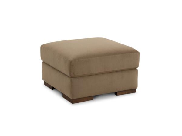 Versatile upholstered ottoman that functions as a footrest, extra seat, or tray table to maximize living room use. Coordinate upholstery with Southpark seating for a cohesive look.