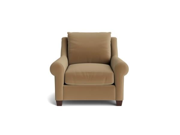 A modern tuxedo-style accent chair with clean lines and plush biscuit tufting for wraparound comfort. Its low, even profile maintains an open view; upholstered in fabric.
