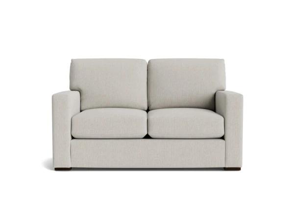 Sleek track‑arm loveseat with attached box cushions and top‑stitched seats for casual modern comfort. Compact proportions suit smaller rooms without sacrificing seating.