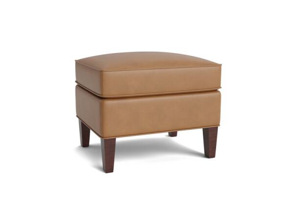 Leather ottoman with a welted, cushion top and tapered wood legs for comfortable footrest or quick seating. Pairs with the Kent chair and offered in a wide selection of leathers.