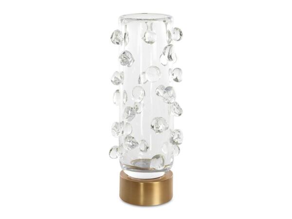 Enhance your home decor with our clear glass vase, adorned with organic glass spheres accenting the outer surface, set atop