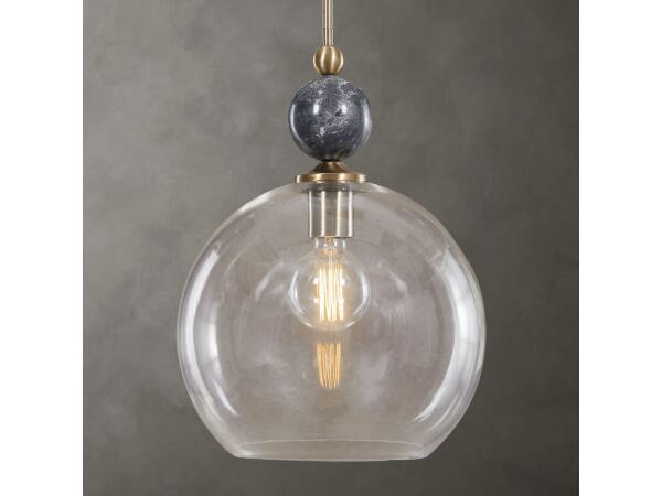 Topped with a rich black marble ball, this 1 Lt. pendant features an oxidized aged brass finish enhancing the simple