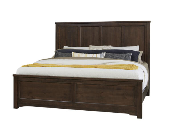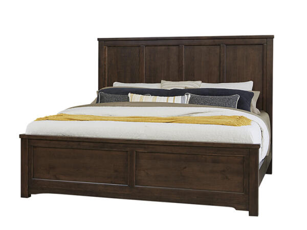 Six-panel bed with raised-panel headboard and low-profile footboard for a relaxed traditional look. Crafted from solid American cherry with mortise-and-tenon construction, made in the USA.