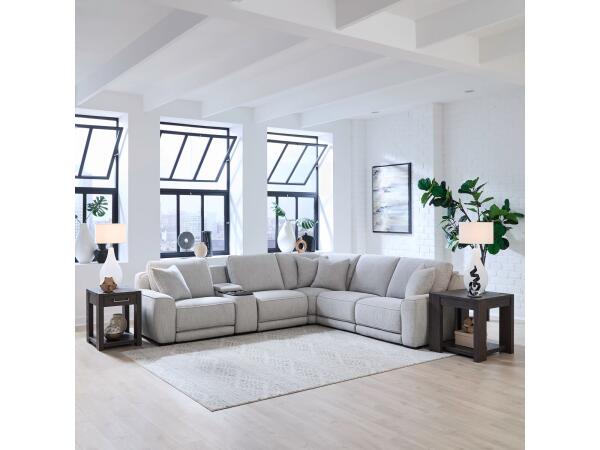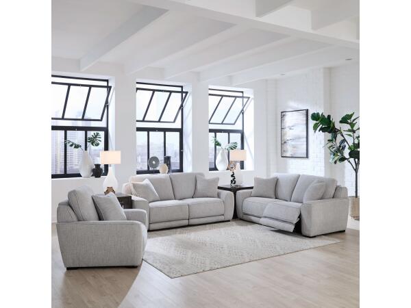 This left arm recliner features dual power zero wall recline with a synchronized power headrest and independent controls for comfort. It includes a butter knife arm and ultra soft plush seating.