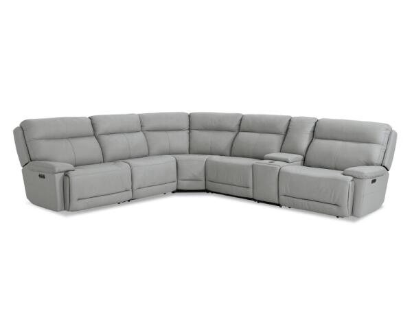 Top‑grain leather power reclining sectional with zero‑gravity end seats and power headrests. Storage console with cup holders and USB ports keeps essentials close.