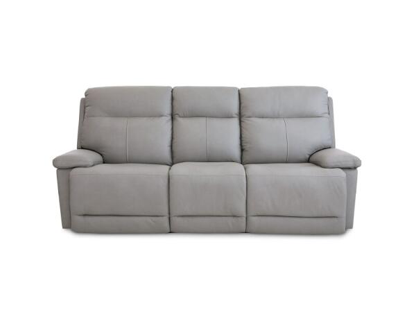 Plush leather power reclining sofa with dual zero‑gravity recliners for pressure‑relieving comfort. Power‑adjustable headrests and built‑in USB ports personalize support and keep devices charged.