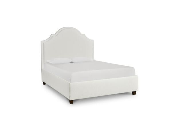 Custom upholstered bed featuring a bonnet-arched headboard for classic, architectural style. Offered as a headboard or complete bed, with your choice of designer fabrics.