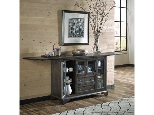 Product Details Height 36 Width 47.5-95 Length/Depth 18.1 Actual Weight 157.3 Wood Species Asian Hardwood Finish Warm Grey Wood Tone
