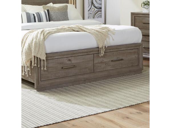 This Queen storage footboard features two deep drawers framed in solid wood trim with a plinth style base, finished in Graystone. It is constructed from durable rubberwood solids and paper laminate.