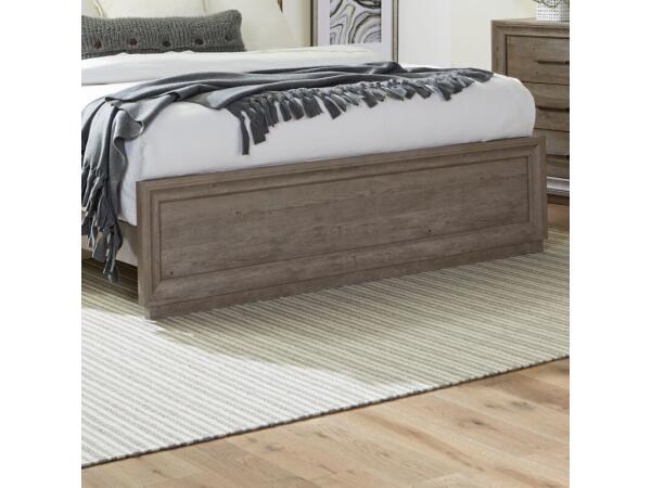 This King panel footboard features a paper laminate panel framed in solid wood trim with a plinth style base, finished in Graystone. It is constructed from durable rubberwood solids and paper laminate.