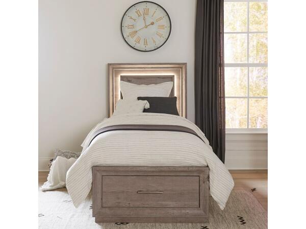 This Horizons Twin Storage Footboard, constructed from rubberwood solids and paper laminate, features a graystone finish and offers convenient storage solutions for your bedroom.