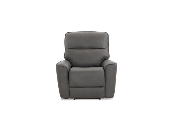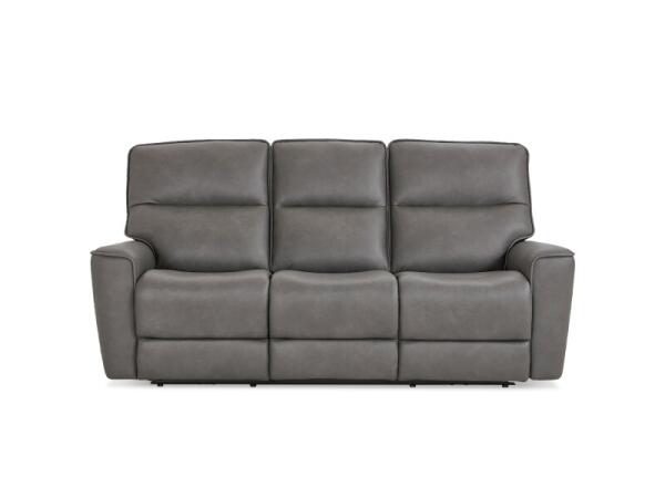 Leather power reclining sofa with dual zero-gravity recliners and adjustable headrests for head-to-toe support. Dual USB ports in the arm controls keep devices charged.