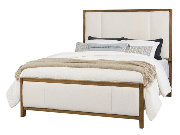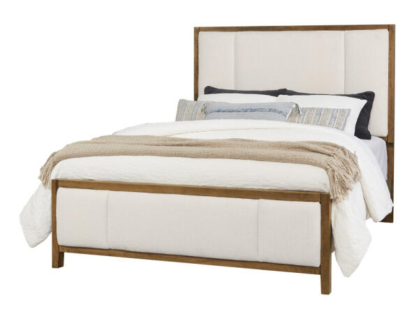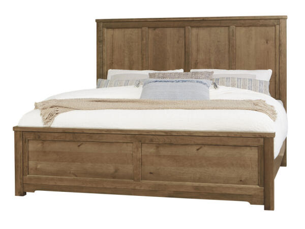 Panel bed with a raised-panel headboard and low-profile footboard, crafted from solid American cherry for a relaxed traditional look. Available in Queen, King, and California King.
