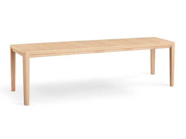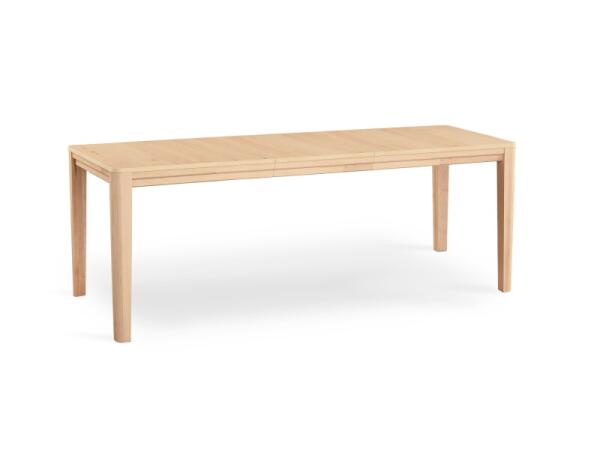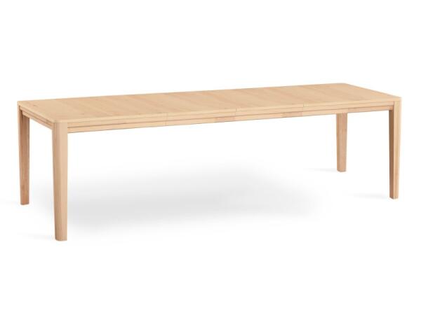 Rectangular dining table with a maple-veneered top and solid Silver maple legs for flexible, modern spaces. Includes a matching leaf to expand seating from 4-6 to 8-10 with a seamless apron design.