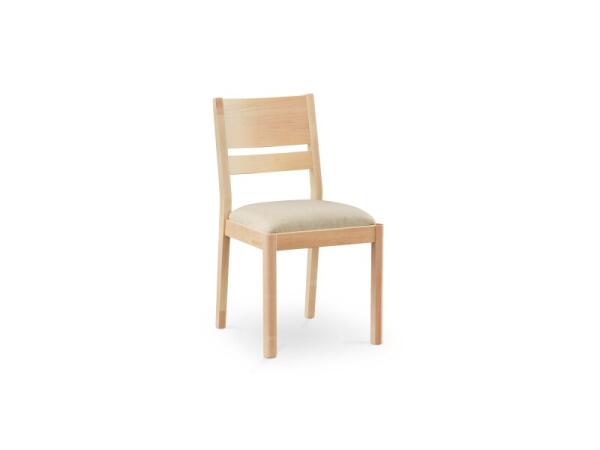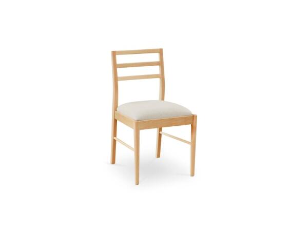 Classic ladderback dining chair handcrafted from Appalachian clear maple with an upholstered seat. Built for durability with one-piece seatback and back-leg construction; 35 in. H x 19 in. W x 22.4 in. D.