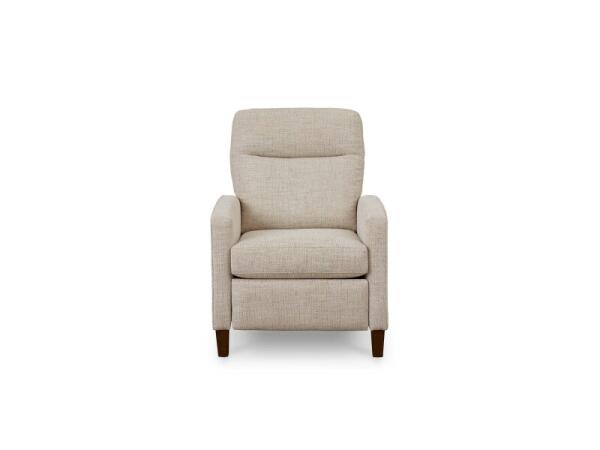 Lay-flat power recliner with track arms, a channeled headrest, and tapered wood legs. USB charging and smooth power recline combine comfort with a modern look.