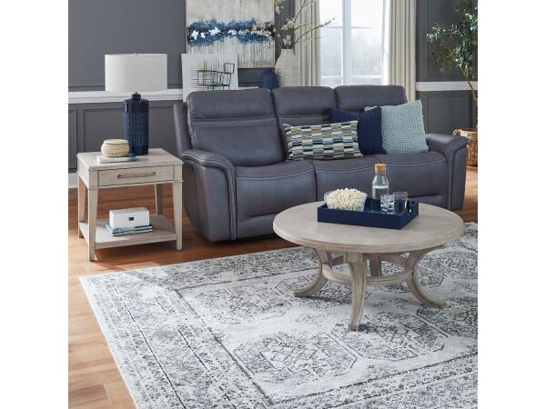 This 3-piece living room set includes a rectangular cocktail table on casters and two end tables for a complete look. The set features fancy face veneer tabletops, flat front storage drawers, and champagne silver bar pull hardware.
