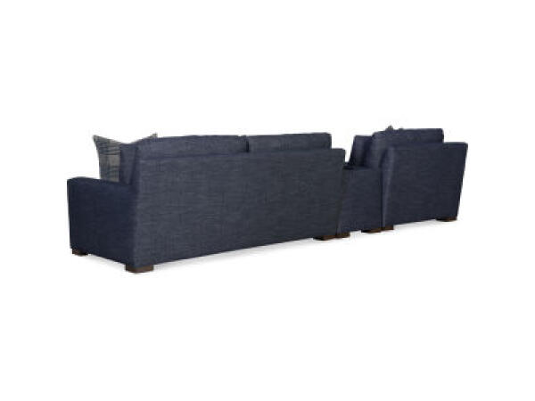 Transitional stationary sectional with Spring Down cushions and loose back pillows for plush, resilient comfort. Engineered hardwood frame with eight-way hand-tied springs; standard Mahogany finish and hundreds of leather options.