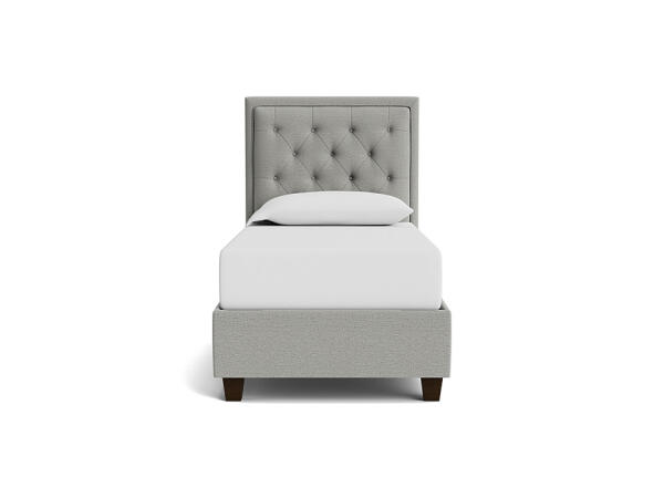 Tufted upholstered bed with clean, modern lines and your choice of fabric. Available as a complete bed or standalone headboard, with sizes from Twin to California King.