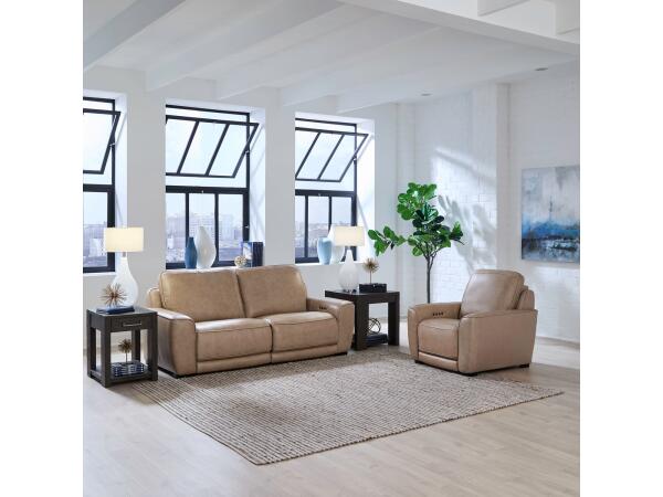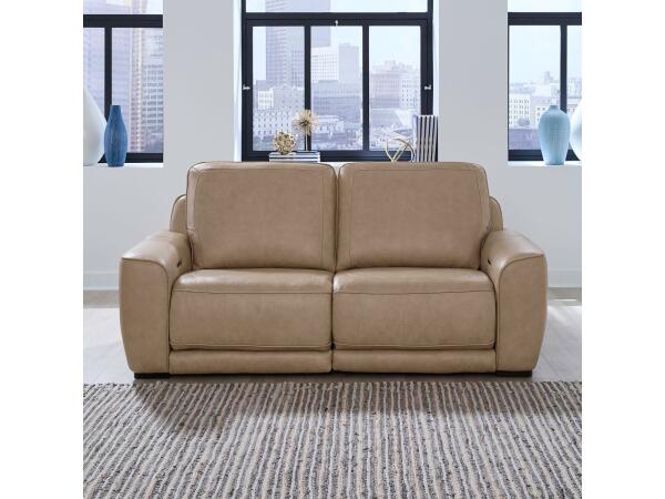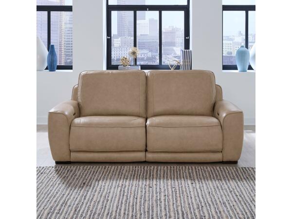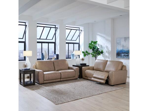 This two-piece loveseat offers a dual power zero wall recline with a synchronized power headrest for optimal comfort. It features a stationary aesthetic with motion functionality and a distinctive butter knife arm.